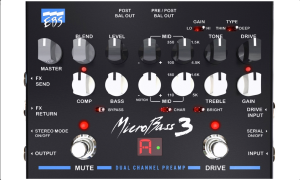 EBS MicroBass III to w pełni analogowy preamp przeznaczony do gitar basowych. Oferuje użytkownikowi dwa kanały - Clean (wzorowany na brzmieniu wzmacniaczy EBS HD350 i HD360) oraz Drive. Znajdująca się na pokładzie opcja Blend pozwala na płynne mieszanie obu kanałów dla uzyskania idealnego brzmienia.