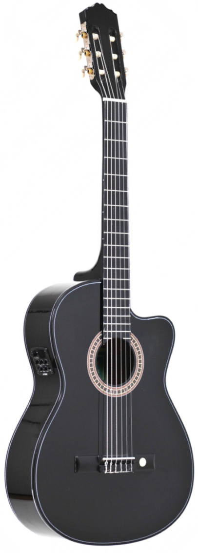 Gitara klasyczna w rozmiarze 4/4 wyposażona w układ elektroniki. Wysoka jakość wykorzystanych materiałów sprawia, że instrument doskonale sprawdzi się zarówno w warunkach domowych, jak i scenicznych. Bardzo dobry stosunek ceny do jakości