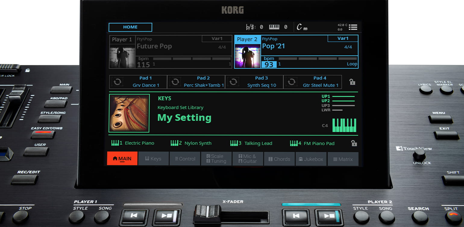Wyświetlacz jest duży i posiada możliwość obsługi dotykowej. Oprócz sterowania samym instrumentem, ekran może być używany do wyświetlania kluczowych informacji dotyczących wykonania, takich jak teksty piosenek, wykresy chord, a nawet arkusze nutowe. Można umieszczać znaczniki, aby ułatwić nawigację po utworach. Utwory, style i dźwięki można również zapisywać w śpiewniku. Śpiewnik to baza danych z utworami, które można organizować w listy przebojów na potrzeby konkretnych występów. Co więcej, śpiewnik można zsynchronizować z zewnętrznymi czytnikami nut lub tabletami.