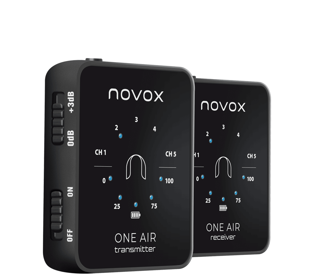 ONE AIR to bezprzewodowy system do nagrywania dźwięku pracujący w paśmie 2.4GHz, który jednocześnie zaskakuje swoimi kompaktowymi rozmiarami, funkcjonalnością i prostotą użycia. Zarówno mikrofon/nadajnik (transmitter), jak i odbiornik (receiver) ważą zaledwie 31 g każdy, a swoim wyglądem i rozmiarem przypominają mały odtwarzacz MP3.