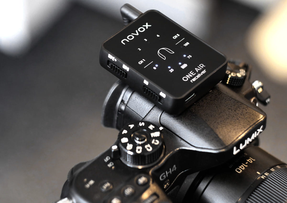 Odbiornik wyposażony jest w wielofunkcyjny uchwyt, dzięki czemu można go przypiąć jako klips do ubrania lub paska albo wsunąć w szynę lampy błyskowej aparatu. Urządzenie można podłączyć do aparatu lub nagrywarki za pomocą kabla wyjściowego jack 3,5 mm i dostroić do aparatu lub kamery za pomocą 2-stopniowej regulacji wzmocnienia. Odbiornik ONE AIR jest ultrakompaktowy i lekki, dzięki czemu jest łatwy do przenoszenia.