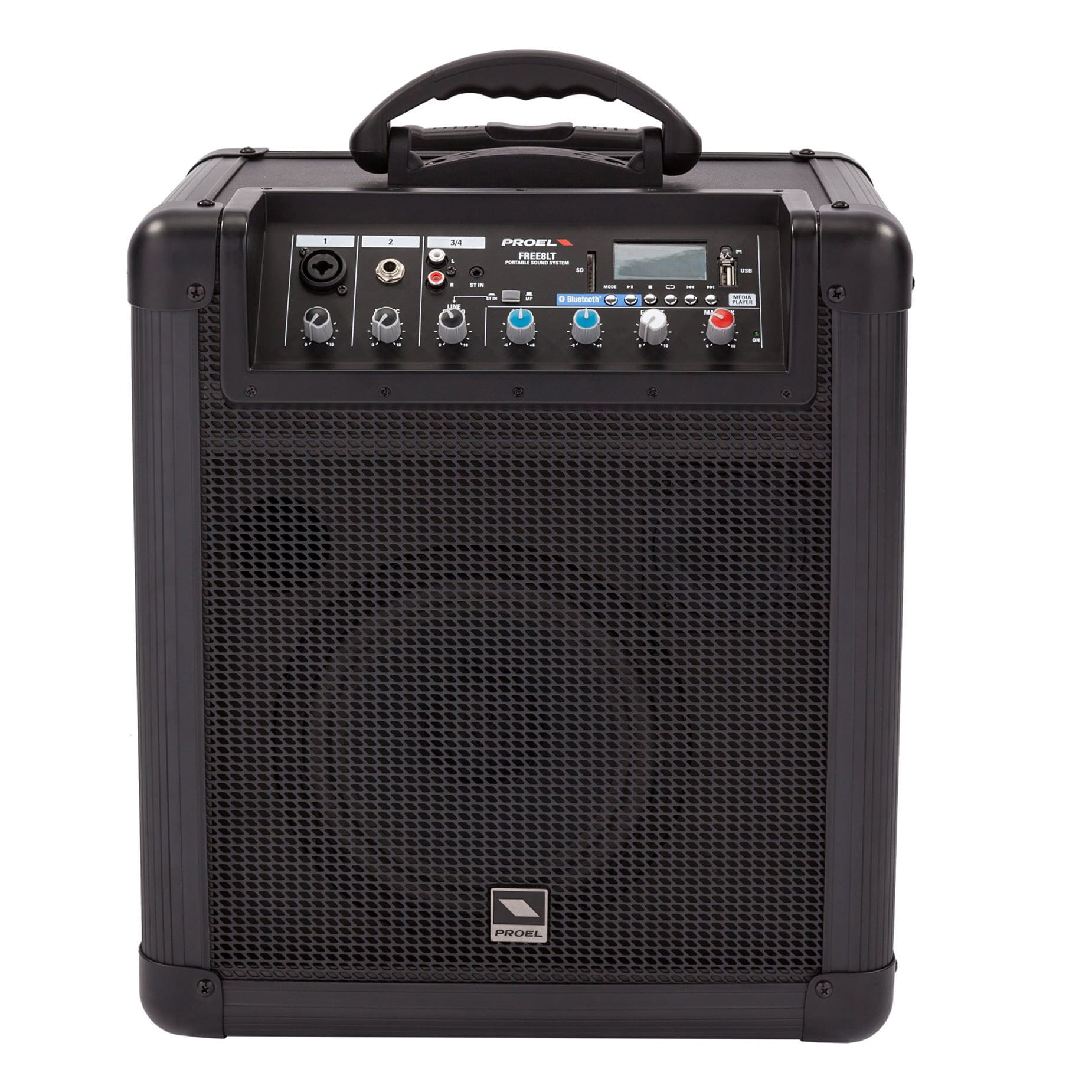 FREE8LT jest bateryjnie zasilanym wzmacniaczem typu combo, który łatwo jest na pierwszy rzut oka skreślić jako skuteczne nagłośnienie mobilne. Dodatkowe smaczki, w które wyposażył tą serię Proel nadają produktom bardzo uniwersalne zastosowanie: wbudowany odtwarzacz MP3, czytnik kart SD, gniazdo USB oraz możliwość podłączenia urządzeń mobilnych poprzez Bluetooth. Mało? Na pokładzie jest również czytelny wyświetlacz oraz pilot do zdalnej kontroli odsłuchu.
