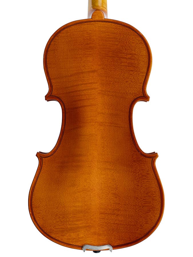 Skrzypce 4/4 – komplet (gotowe do gry), lity korpus, tył z płomienistego klonu, hebanowe elementy, w zestawie smyczek i futerał