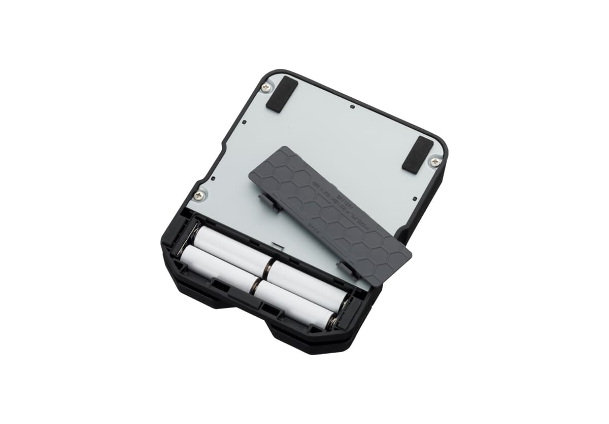 - Zasilanie 4 bateriami AA, żywotność baterii alkalicznych wynosi 18 godzin